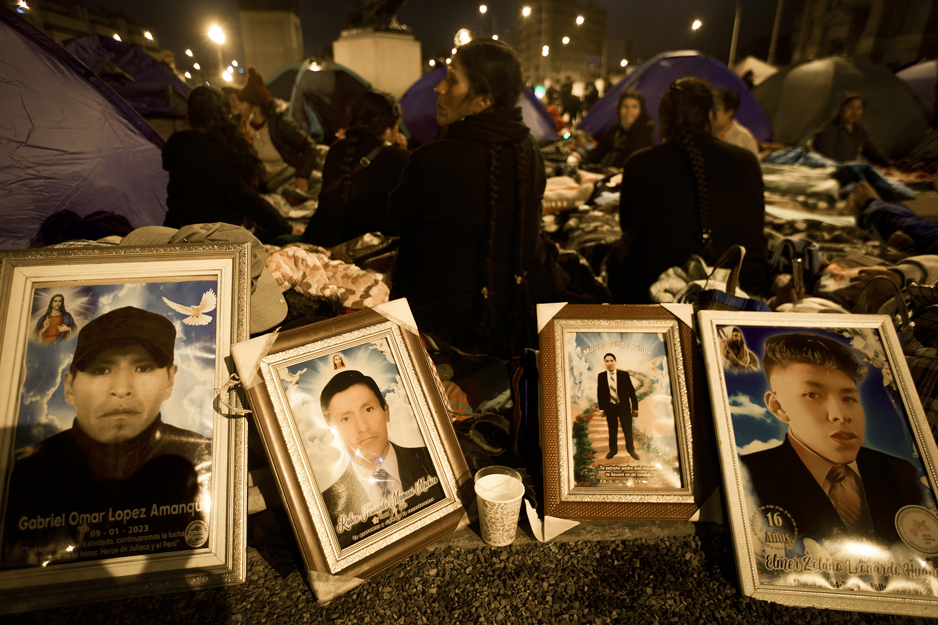 A unos metros de una roca sagrada y venerada por comerciantes juliaqueños, la puerta de la familia Samillán se abre en medio de tiendas de sastres. Allí dentro, hay un patio con las fotografías de los 50 civiles asesinados por proyectiles y bombas lacrimógenas de las fuerzas policiales y militares.