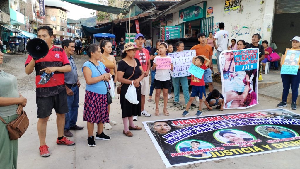 Luego subieron por el jirón Hugo Pesce, en donde se encuentra ubicado el Hospital que lleva el mismo nombre, y el cual se vio afectado en diciembre del 2022 por las bombas lacrimógenas que tiraba la policía. Llegaron hasta la plaza de armas para dar unas palabras por sus hijos: Denilson, David, Beckham, John, Wilfredo, Cristhian, Robert. Todos muchachos, entre ellos escolares, que apenas salían de la adolescencia.