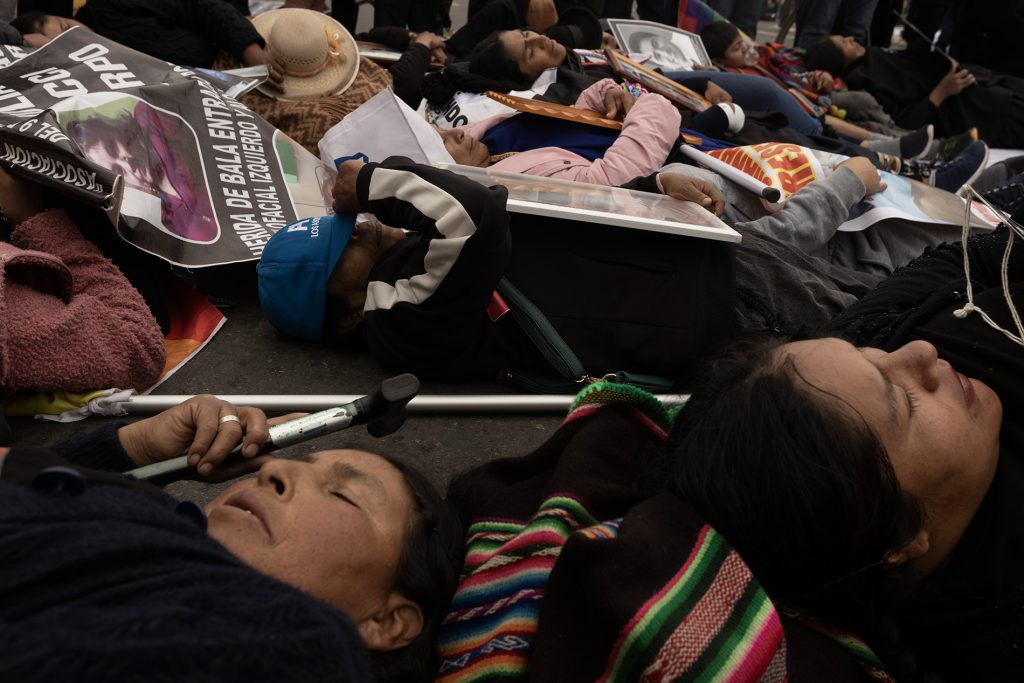 Ruth se acercó y la miró a los ojos. La escolta de Dina y otras personas le exigían que se identificara. Ruth se presentó como la viuda de Leonardo Hancco y le dijo que necesitaba justicia. Dina Boluarte lanzaba caramelos y le mostraba una sonrisa retorcida, como si la hubiera practicado durante mucho tiempo dentro de las paredes de Palacio. En unos segundos también apareció Ilaria Aymé para reclamar justicia por su hijo Christopher Ramos, un adolescente de 15 años asesinado por una bala del Ejército en el corazón.